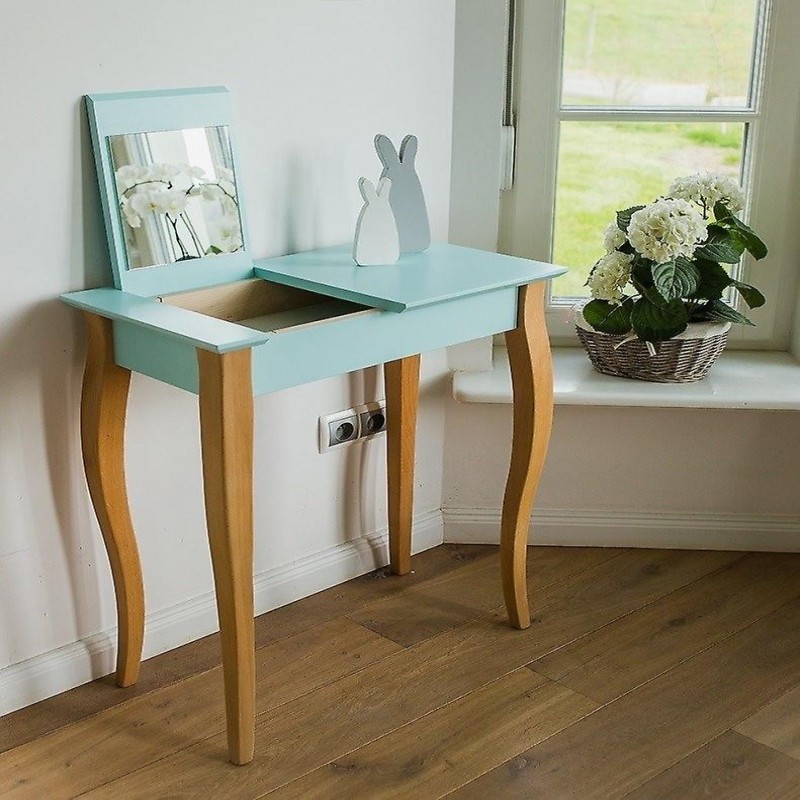 A penteadeira é feita de madeira de faia e MDF com acabamento laqueado. Isso a torna não apenas uma peça de mobiliário com design elegante, mas também um produto durável. Os pés coloridos têm um acabamento em um elegante tom de preto, e o tampo da mesa tem 19 mm de espessura, conferindo-lhe um aspecto robusto e resistente.