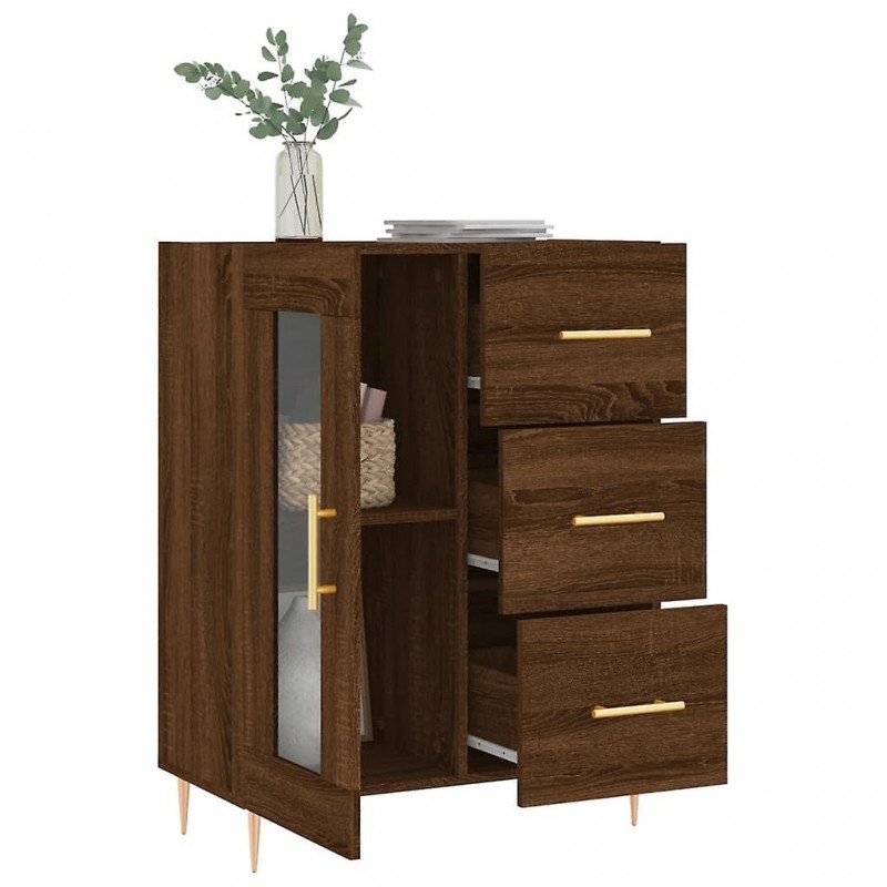 Com seu design atemporal, este aparador clássico é o complemento perfeito para sua casa. Material durável: A madeira é um material de altíssima qualidade, com superfície lisa, caracterizada por sua durabilidade, estabilidade e resistência à umidade. Amplo espaço de armazenamento: Com 3 gavetas e 2 compartimentos atrás do aparador, ele oferece bastante espaço para guardar diversos itens do dia a dia de forma organizada e ao alcance das mãos. Apresentação: O tampo robusto deste aparador é ideal para exibir objetos decorativos, porta-retratos e vasos de flores. Porta prática: Você pode guardar seus itens mais importantes neste móvel de forma elegante e organizada, protegendo-os da poeira. Pés de metal: Os pés de metal conferem um visual agradável e garantem estabilidade. Atenção: Para evitar que tombe, este produto deve ser fixado com o suporte de parede fornecido.