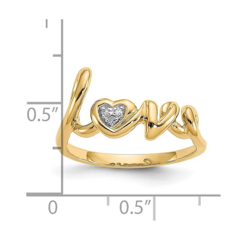Anel Love com Diamantes de 10 quilates e 2 mm - Tamanho 7,00 - 2,1 gramas - Peso total dos diamantes: 0,009 quilates em ouro amarelo 10 quilates - Caixa de joias para presente inclusa - Largura da aliança: 2 mm - Largura da peça: 2 mm - Comprimento da parte superior do anel: 10 mm - Largura da parte superior do anel: 17 mm - Acabamento: Polido - Largura da parte superior do anel: 17 mm - Comprimento da parte superior do anel: 10 mm - ::: :: [ Cuidados e Manuseio dos Diamantes ] - Limpe com água morna e sabão neutro, utilizando uma escova ou pano macio. :::