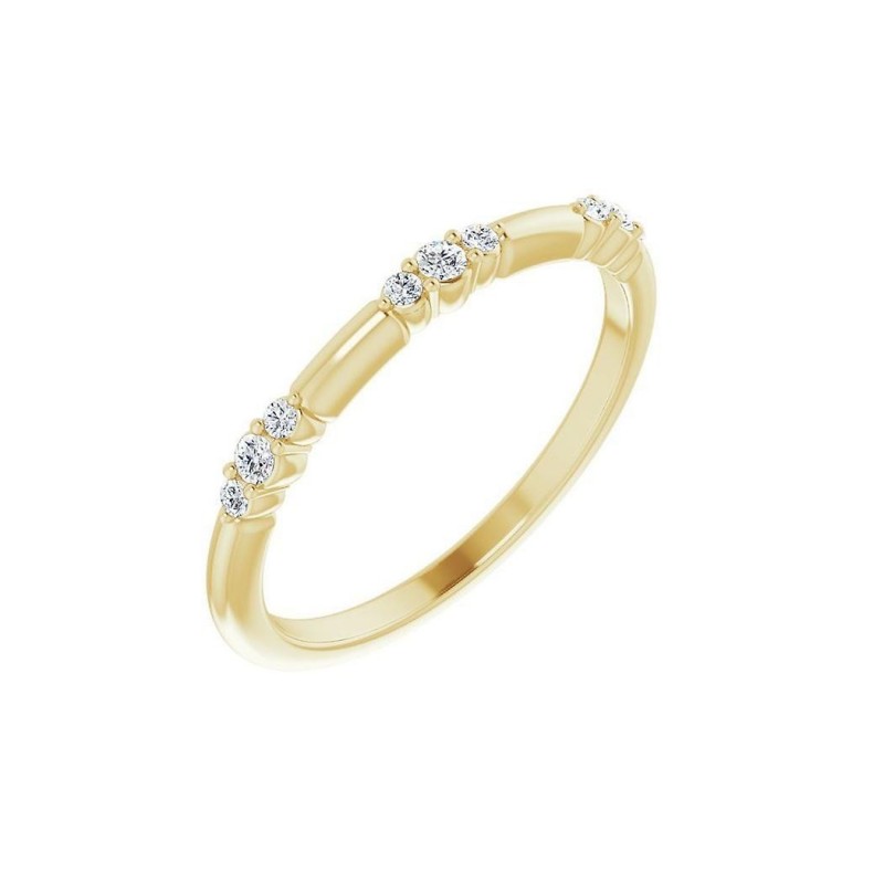 Στοιβαζόμενο δαχτυλίδι από κίτρινο χρυσό 14 καρατίων με γυαλισμένο στρογγυλό διαμάντι 0,13 καρατίων.