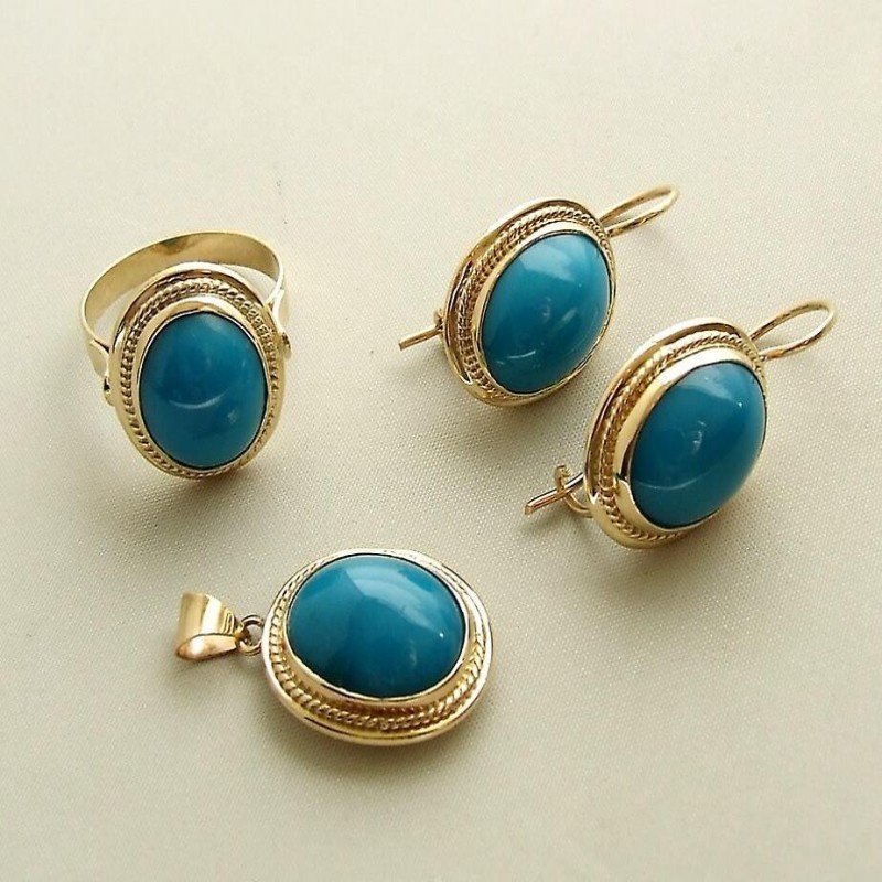 Χρυσό δαχτυλίδι, σκουλαρίκια και μενταγιόν με τουρκικές λεπτομέρειες.