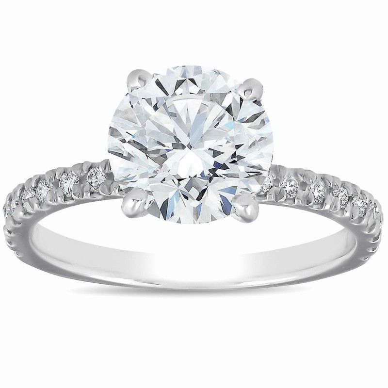 Pompeii3 - Este anel feminino clássico e tradicional apresenta uma pedra central de aproximadamente 2 quilates e 18 diamantes de lapidação redonda. Todos os diamantes são cravejados em uma estrutura de ouro branco 14k maciço e polido. -- Tamanho do dedo - 8 Outros tamanhos disponíveis, ligue para (847) 367-7022 para mais informações -- Metal - Ouro branco 14k -- Pureza - 14k -- Cor - H/I -- Clareza - SI2 -- Estilo - Anéis de noivado/com várias pedras -- Número do item - ENG123229-2O.8 Caixa de presente incluída || Garantia de 180 dias || Unissex || Fabricado nos EUA || Preço direto da fábrica || Garantia de devolução do dinheiro || 100% autêntico